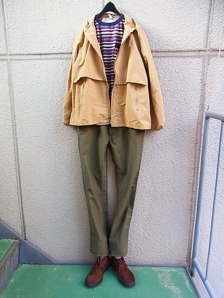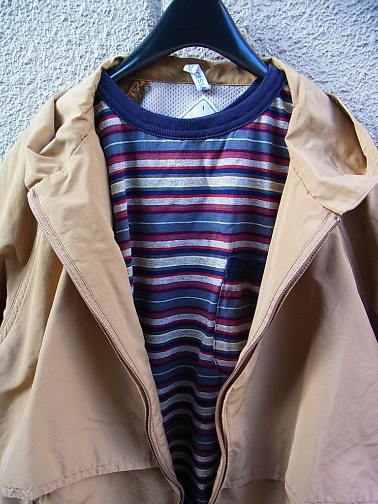 本日の上着はNOUNの新作”マリーナ・ジャケット”薄いナイロン素材に裏のメッシュ張りが使い手のこと