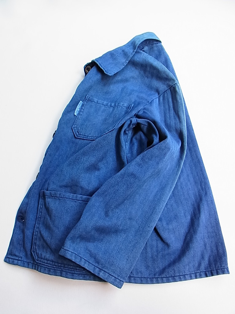 元は白いヘリンボーン地だったのを”インディゴ”染めを施した品、、、国内でも有数のファクトリーによる