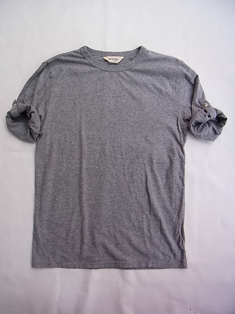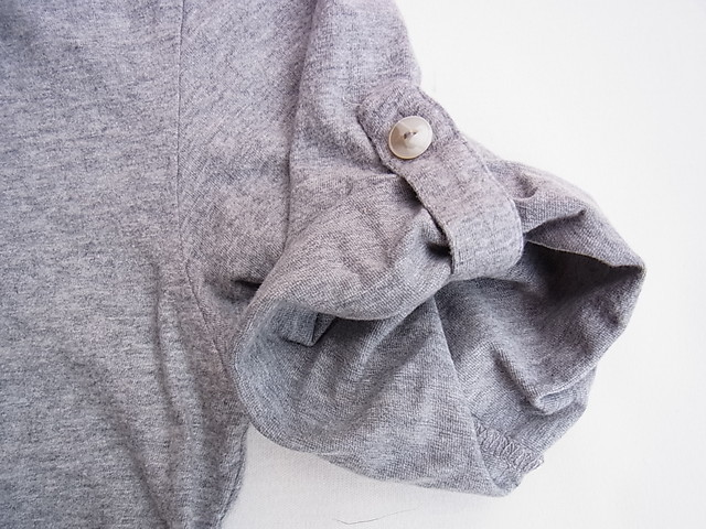 プレーンなTシャツを袖の一仕事でデザイン性タップリの魅力的な品に仕上げています