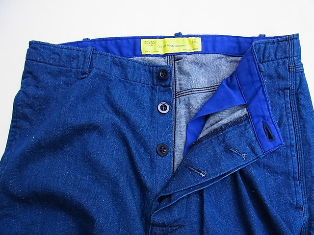 NOUNのデニムのサイドパンツは12oz位(普通のジーパンは14ozほど)の厚みにて