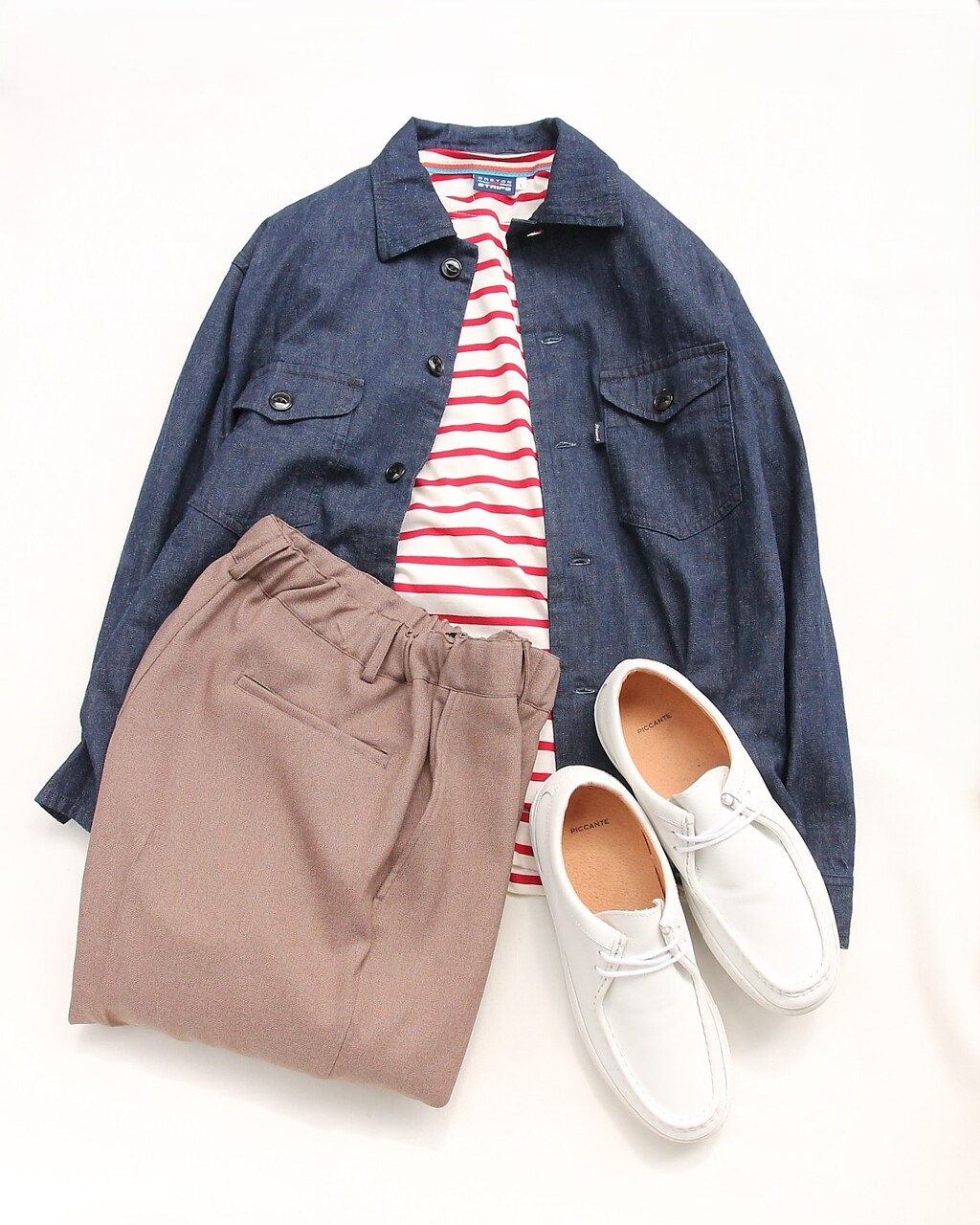 NOUN MC ストライプシャツジャケットをアウターに