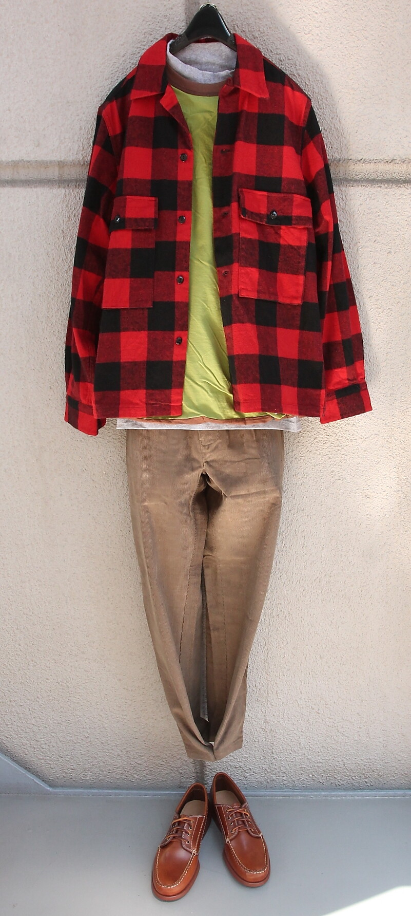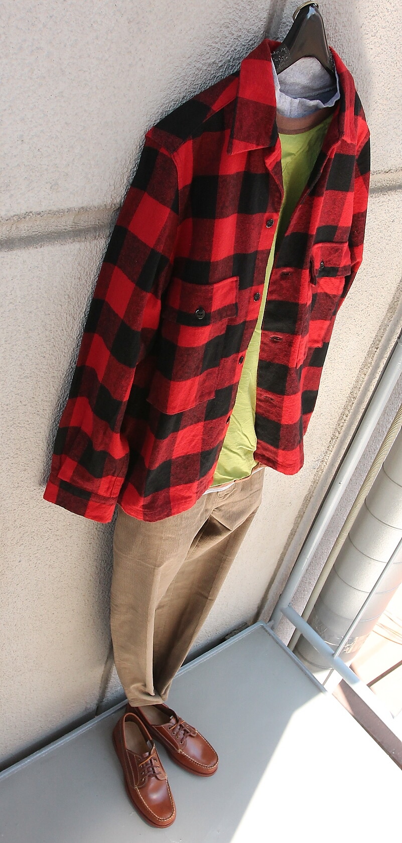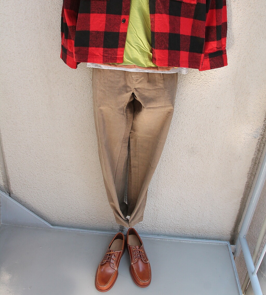 足元は Bass キャンプモック ジャックマンプルアップ。