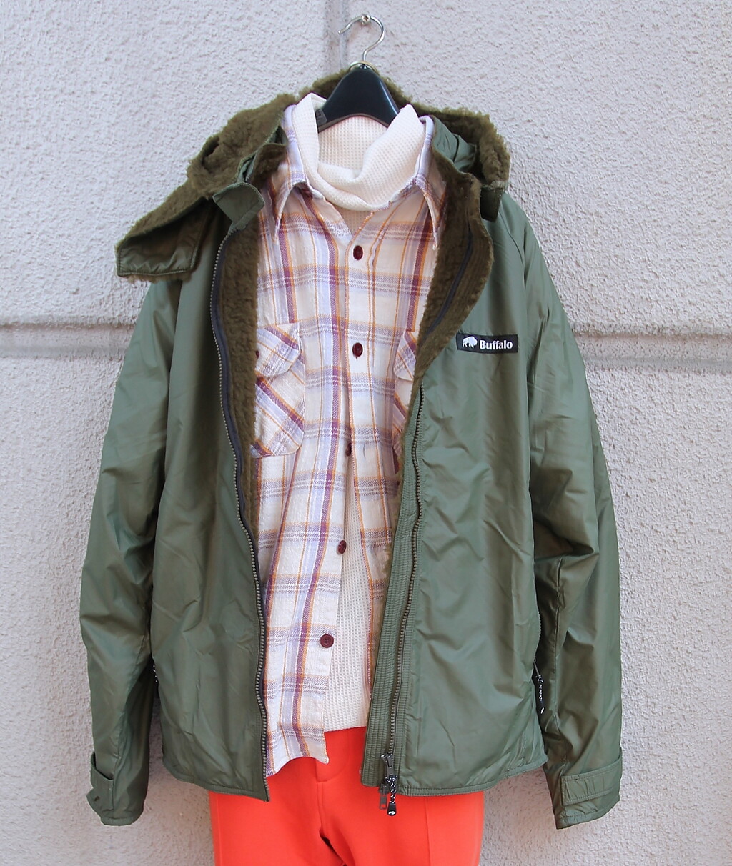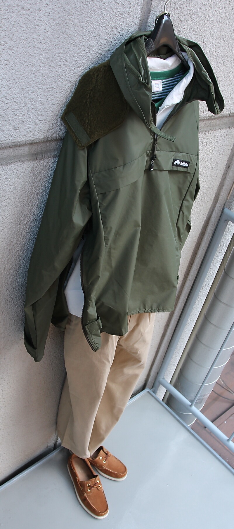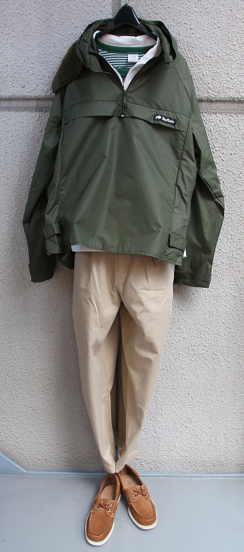 本日= Buffalo ウインドシャツ w フードをアウターに、、、