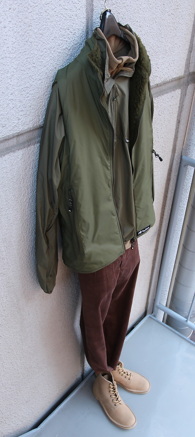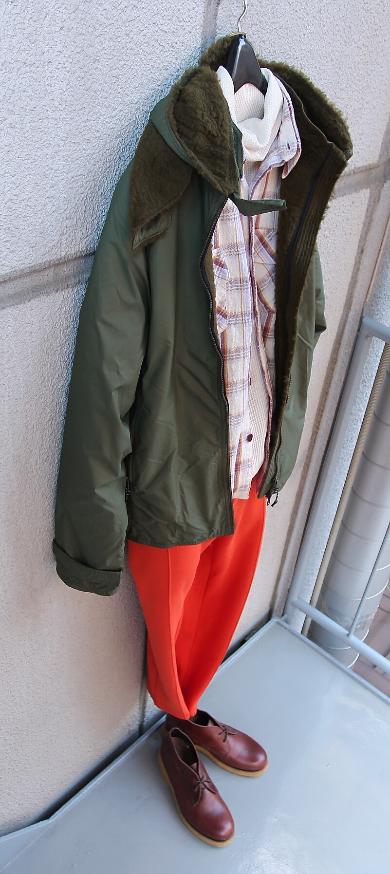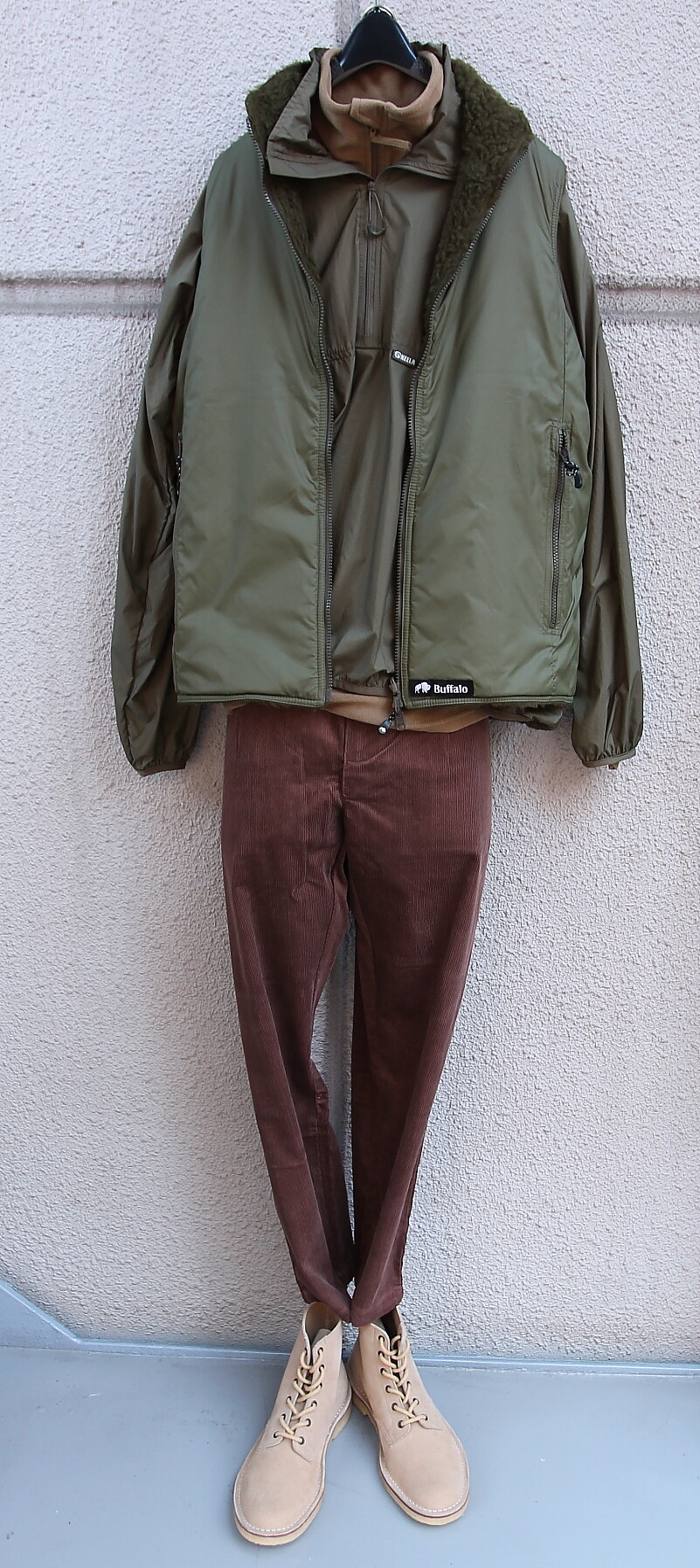 本日= Buffalo ウインドシャツ w フードをアウターに、、、