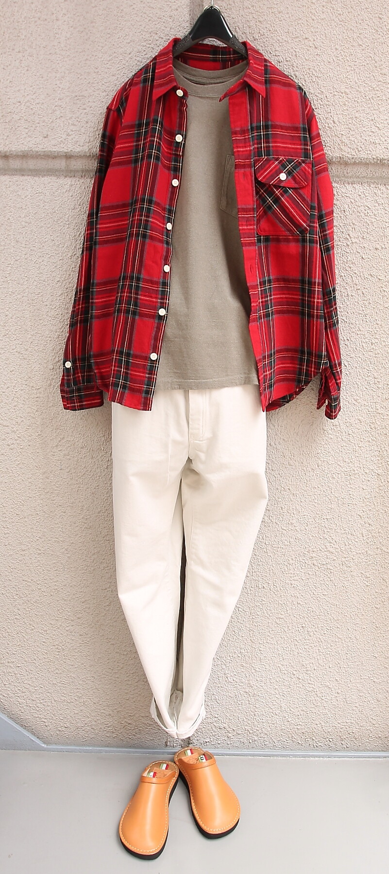 足元は Antichi Romani フォンドサンダル。